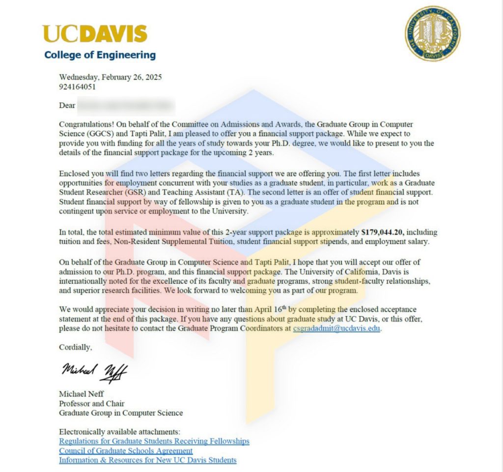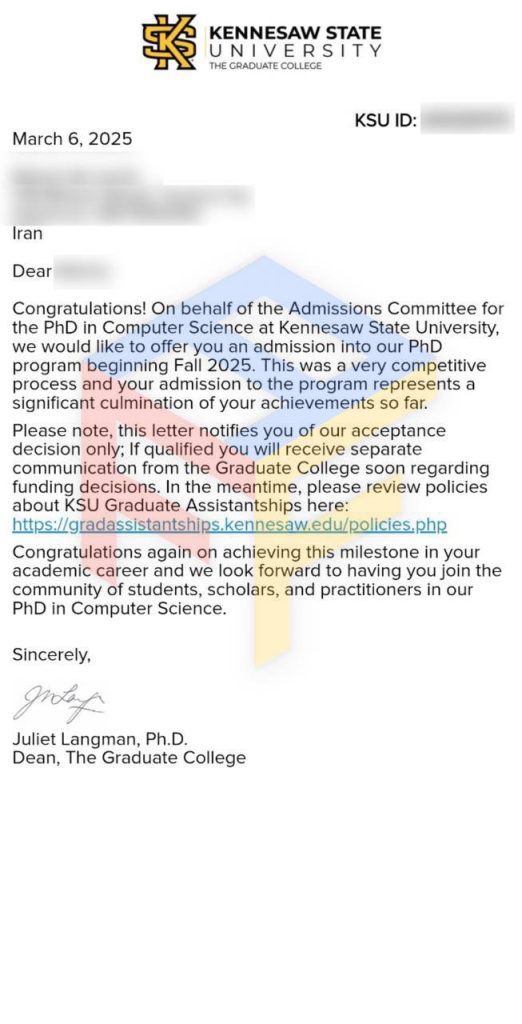 - رشته پذیرش شده: علوم کامپیوتر (هوش مصنوعی)