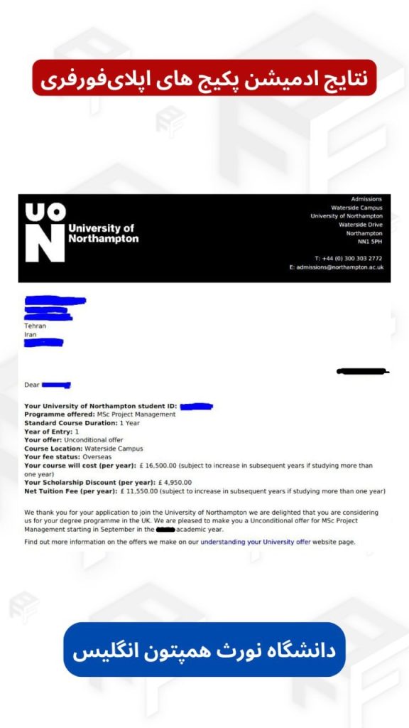 - دانشگاه پذیرش شده: دانشگاههای نورث همپتون و برمینگهام انگلستان 🇬🇧