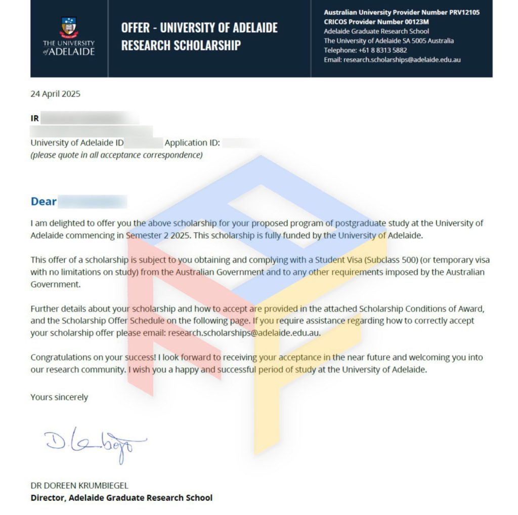 - دانشگاه پذیرششده: دانشگاه گوتینگن (یکی از 10 دانشگاه برتر)